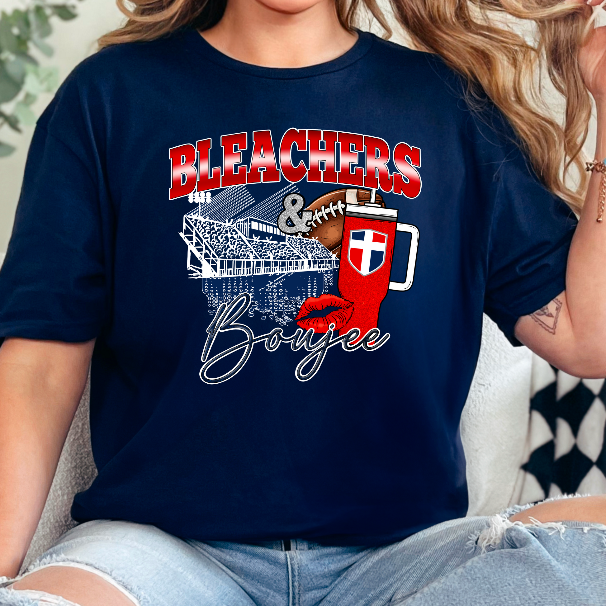 Represent your Saints pride with this bold āBleachers & Boujeeā tee! Featuring stadium vibes, football flair, and a glam tumbler with a red, white, and navy design, this tee screams spirit and sass.