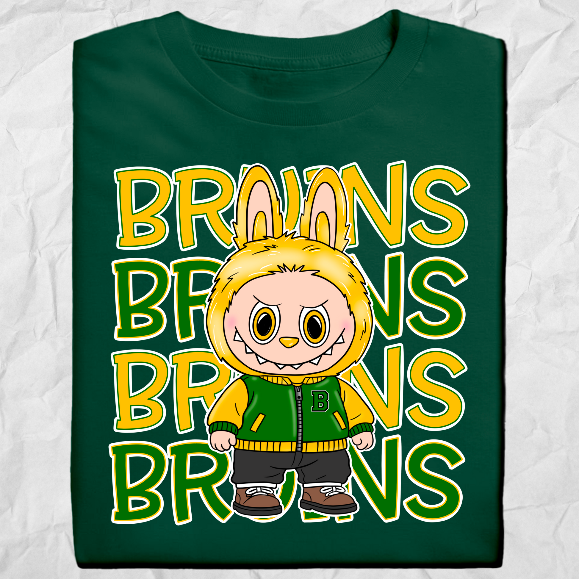 Cheer on your team in style with this eye-catching Bruins tee featuring a golden yellow monster mascot in a varsity jacket! Bold “BRUINS” text is stacked behind the graphic for a spirited look perfect for game day, school events, or everyday wear. A playful and bold choice for Bruins students, parents, and fans!