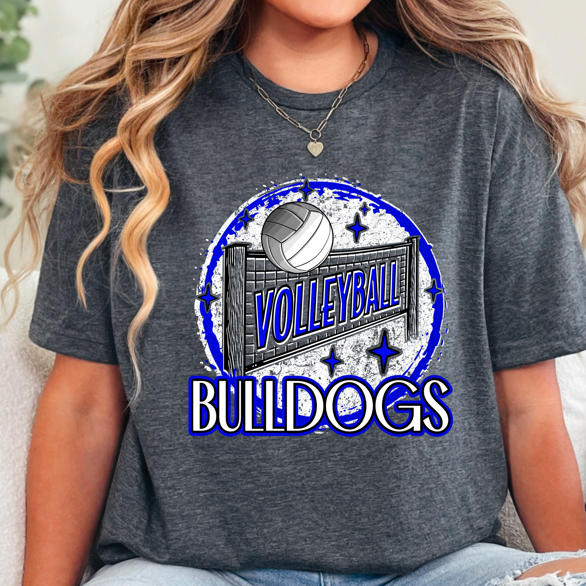 Serve up serious spirit with this Bulldogs Volleyball tee! Designed with a bold blue and white volleyball graphic and a grungy game-day vibe, this shirt is perfect for players, fans, and proud parents. A must-have for the next match!