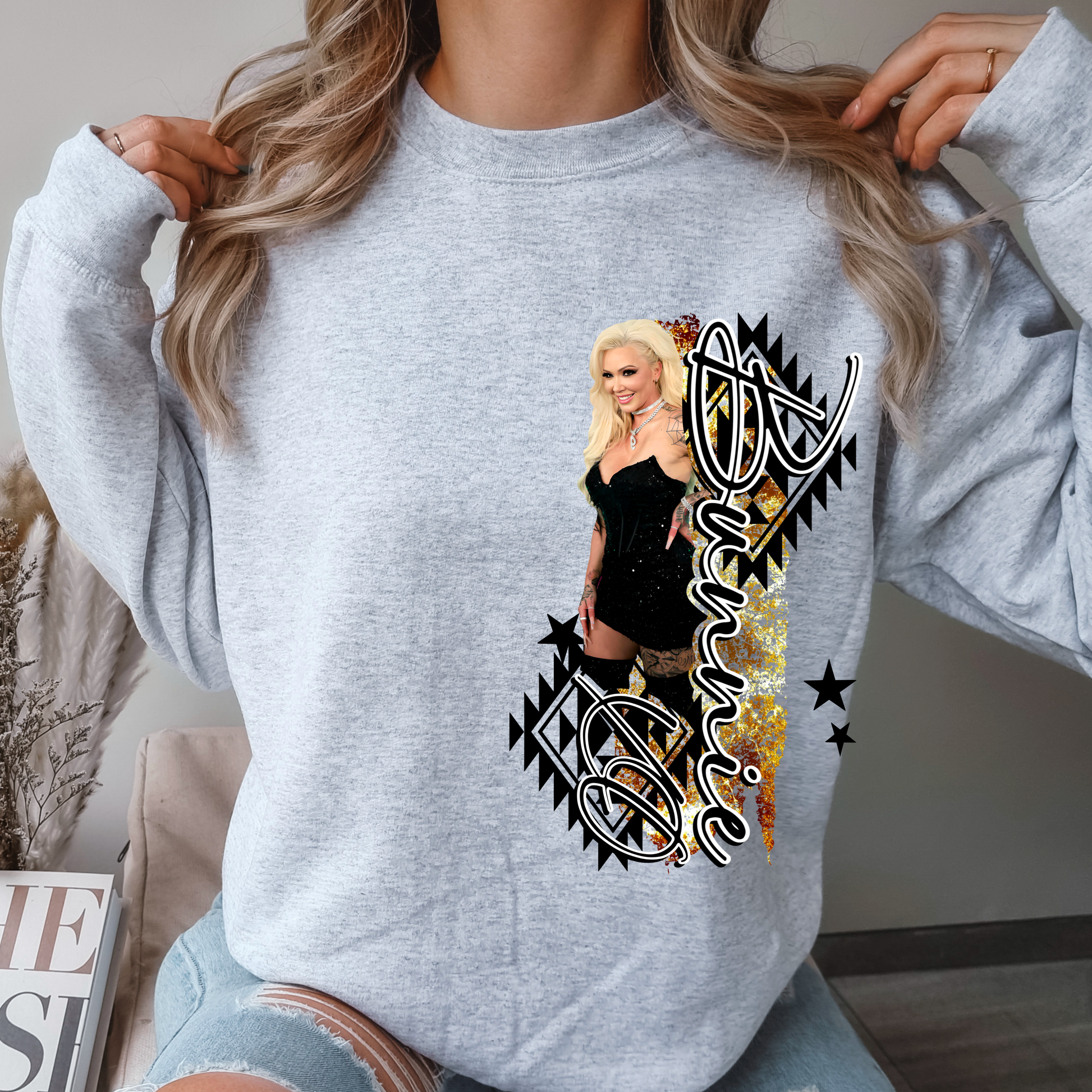 grey sweatshirt