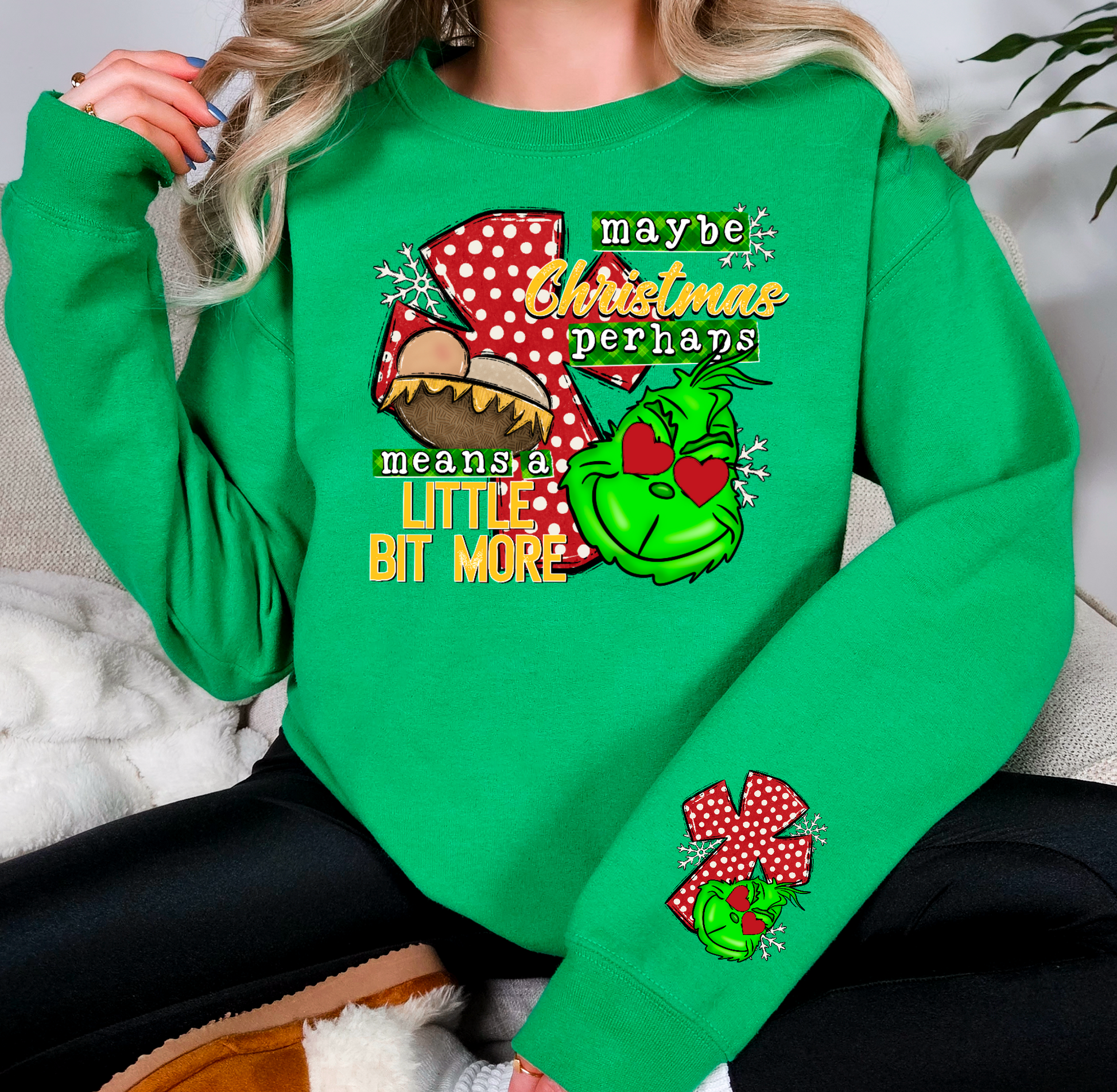 green sweatshirt