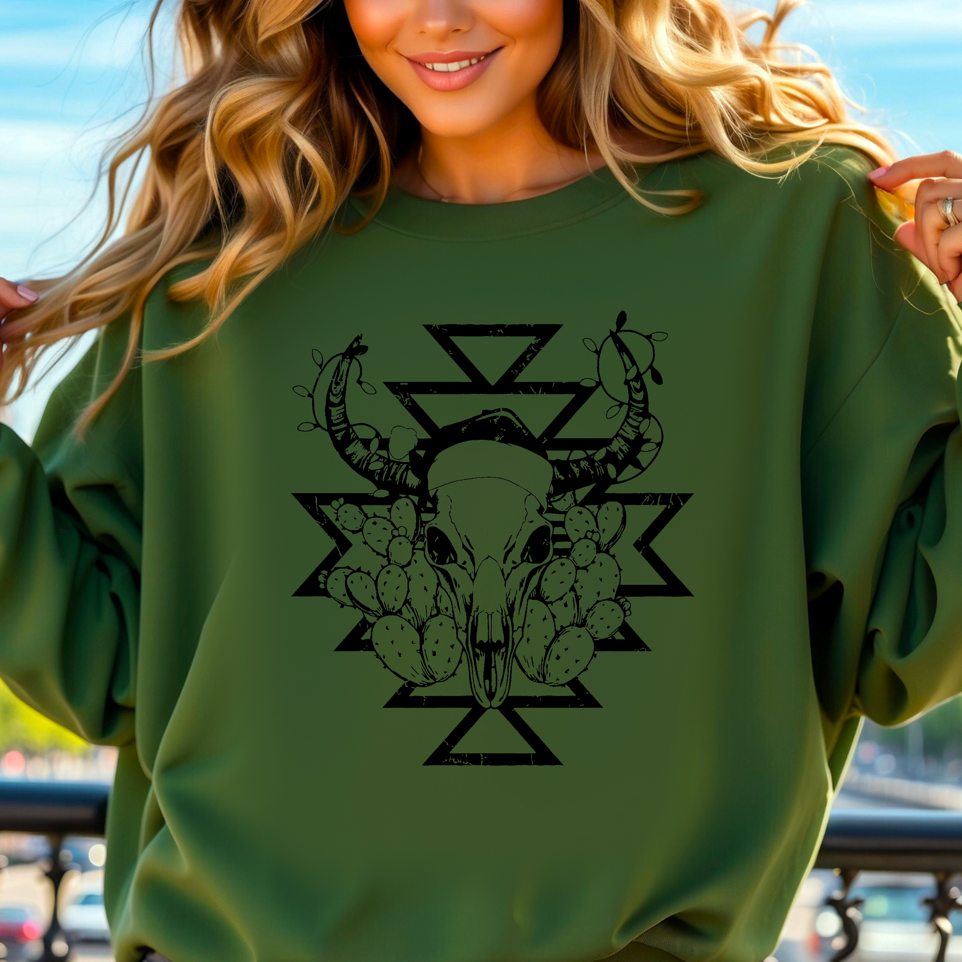 green sweatshirt