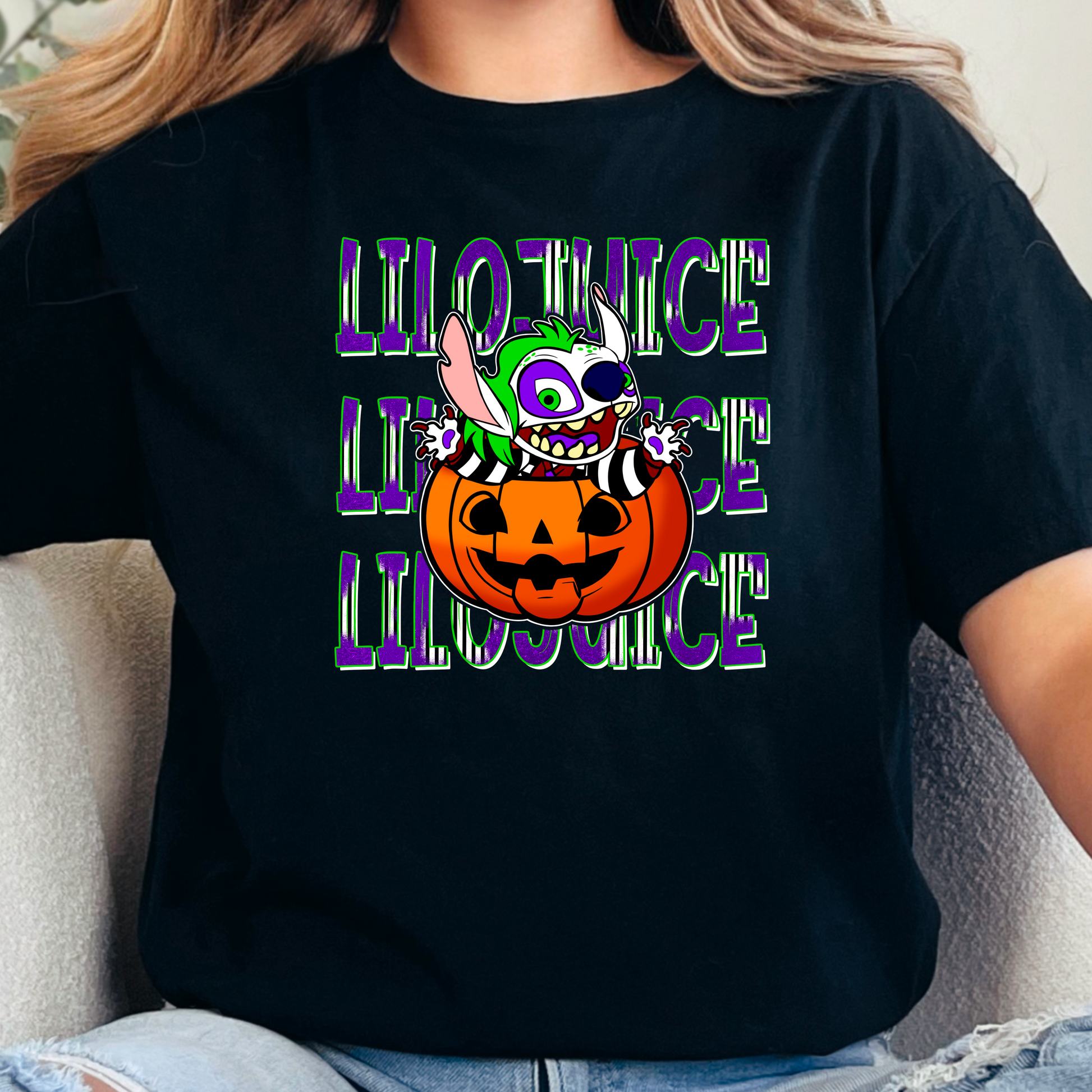Get spooky and silly with this Halloween tee! Featuring a mischievous green-haired alien monster popping out of a jack-o’-lantern with bold “LILOJUICE” lettering in vibrant purple and green, this shirt is perfect for fans of creepy-cute mashups. Great for Halloween parties, trick-or-treating, or just celebrating your love of weird and wild fall fun.