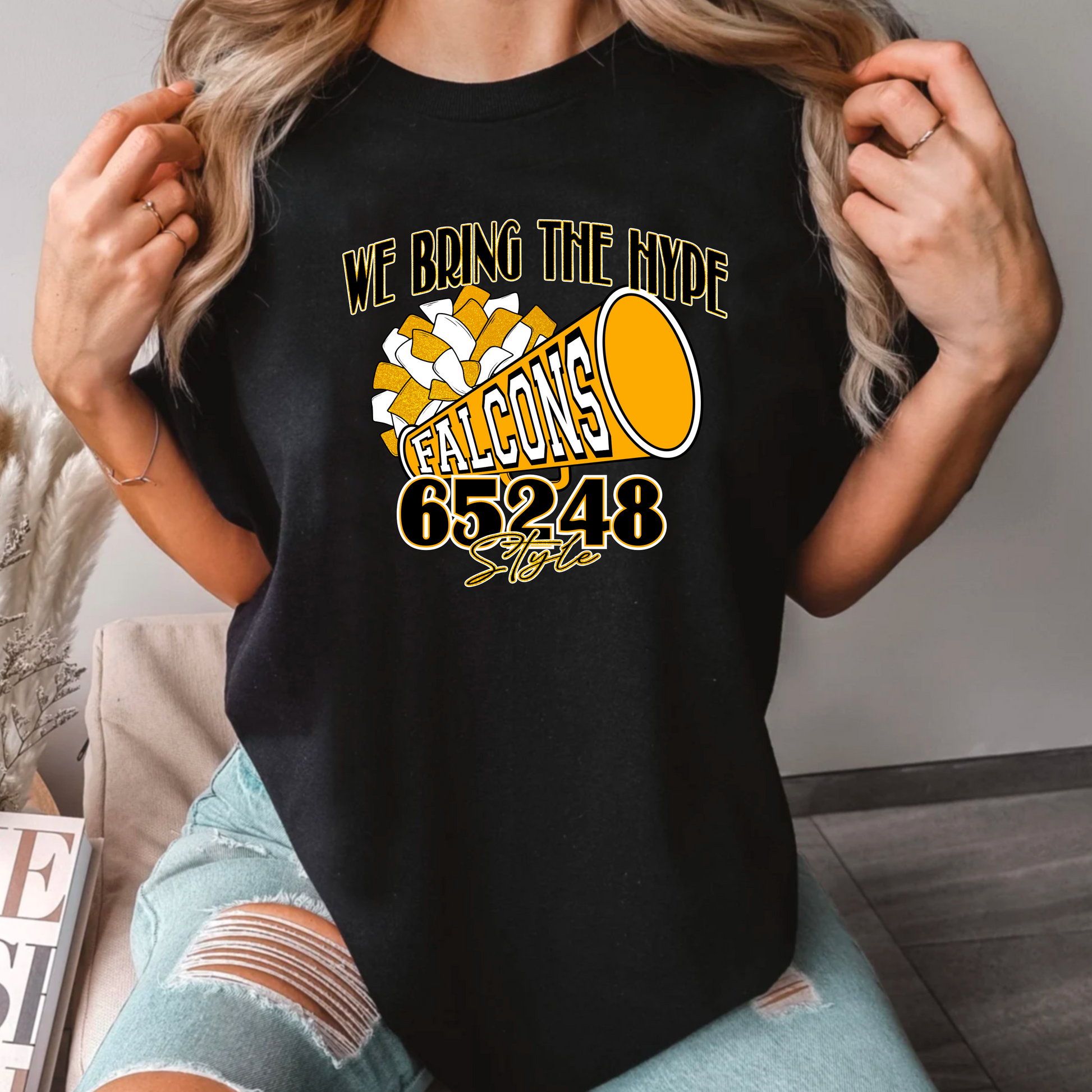 This Falcons tee brings bold energy to every pep rally, football Friday, and school event. Featuring gold and white cheer bows, a megaphone, and zip code pride — it’s the ultimate spirit tee for fans in 65248.