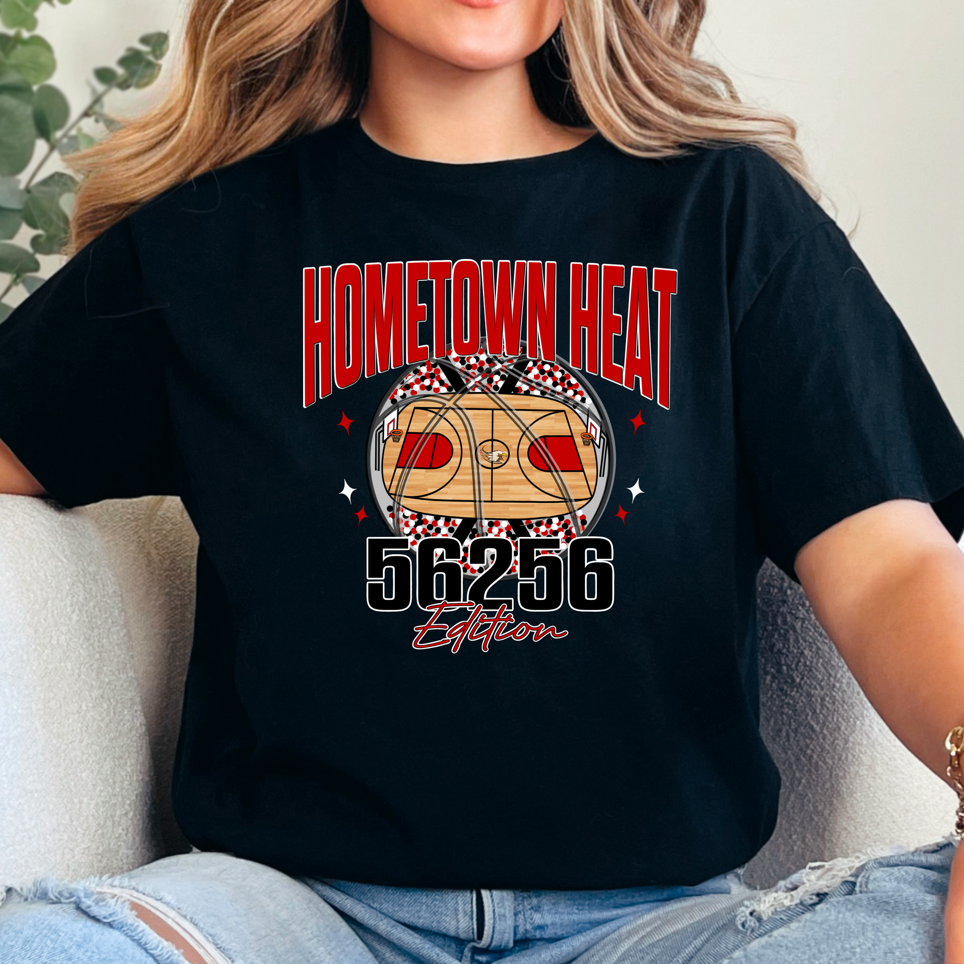 Turn up the hometown pride with this bold “Hometown Heat” 56256 Edition tee! Featuring a crisp red varsity-style font, full basketball court graphic, and black-and-white checkered accents, this tee reps your zip code and team spirit in serious style. Perfect for Eagles fans, game nights, and community pride.