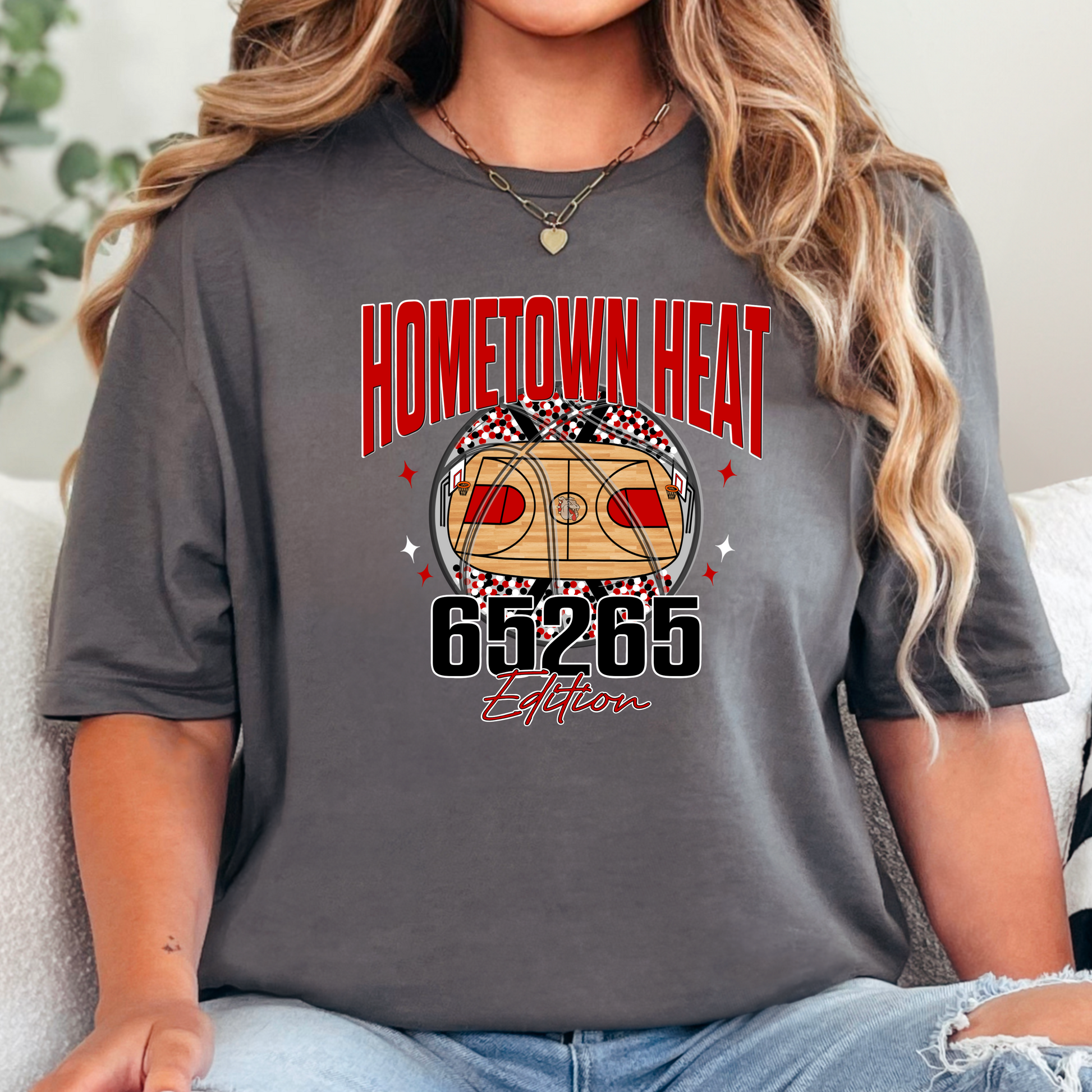 Turn up the energy in this bold “Hometown Heat” 65265 Edition tee! Featuring red varsity-style lettering, a full court graphic, and checkered accents, this shirt reps your zip code with classic hoops pride. Perfect for Bulldogs fans who bring passion to every play and hometown heat to every game.