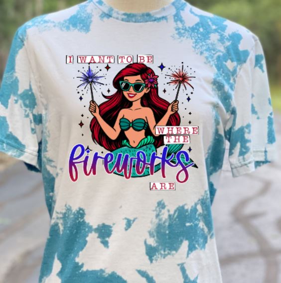 Make a splash with our Little Mermaid Fireworks Tee! Dive into summer style with this magical design, perfect for adding some sparkle to your wardrobe. Get ready to light up the night sky in mermaid fashion!