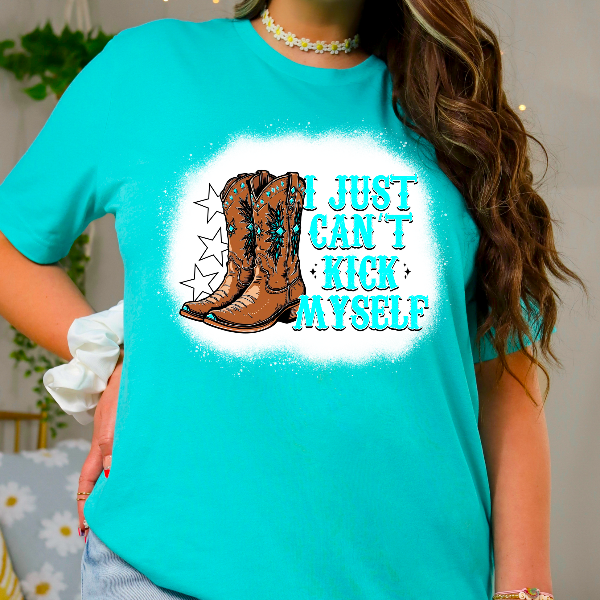 Add a little sass to your western wardrobe with this “I Just Can’t Kick Myself” graphic tee! Featuring detailed cowboy boots and playful lettering, it’s the perfect mix of country charm and humor. Great for rodeos, fairs, or casual days when you’re feeling a little bit extra.