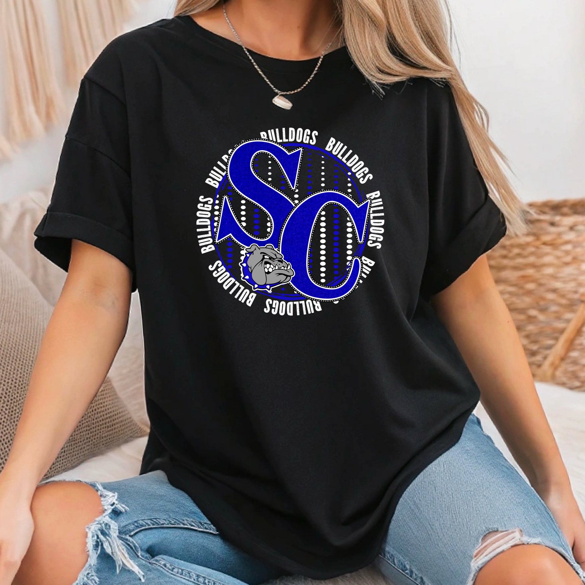Show your school pride with this bold SC Bulldogs patch tee! Featuring varsity-style “SC” letters, a bulldog mascot, and a circle of repeating “BULLDOGS” text, it’s perfect for students, fans, and alumni repping their team.