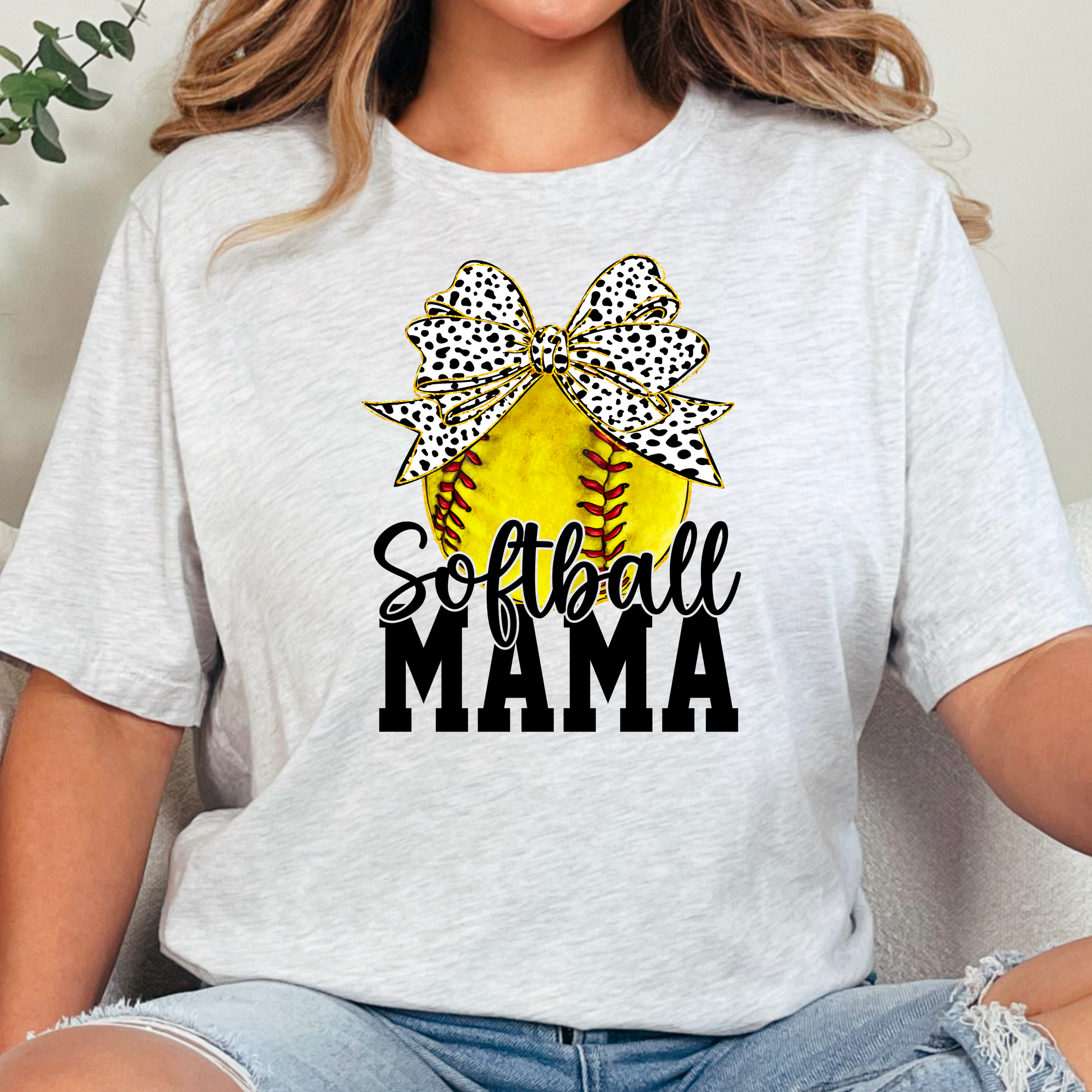 Show your fierce love for the game with this stylish Softball Mama tee! Featuring a bright yellow softball topped with a bold leopard-print bow, this design combines sporty pride with trendy flair. Perfect for ballpark days, team spirit wear, or cheering on your favorite player!