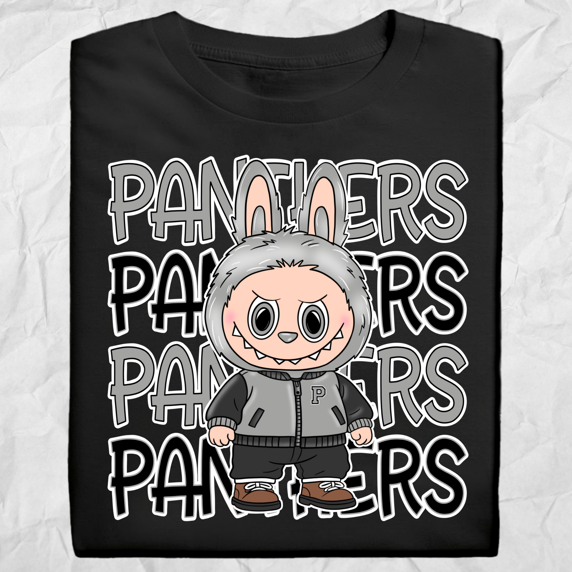 Bring the energy in this bold Panthers Monster tee! Featuring a gray-furred monster in a black and gray varsity “P” jacket, this design pops against the stacked “PANTHERS” text. Perfect for showing off your school pride, game day hype, or just rocking your panther spirit any day of the week!