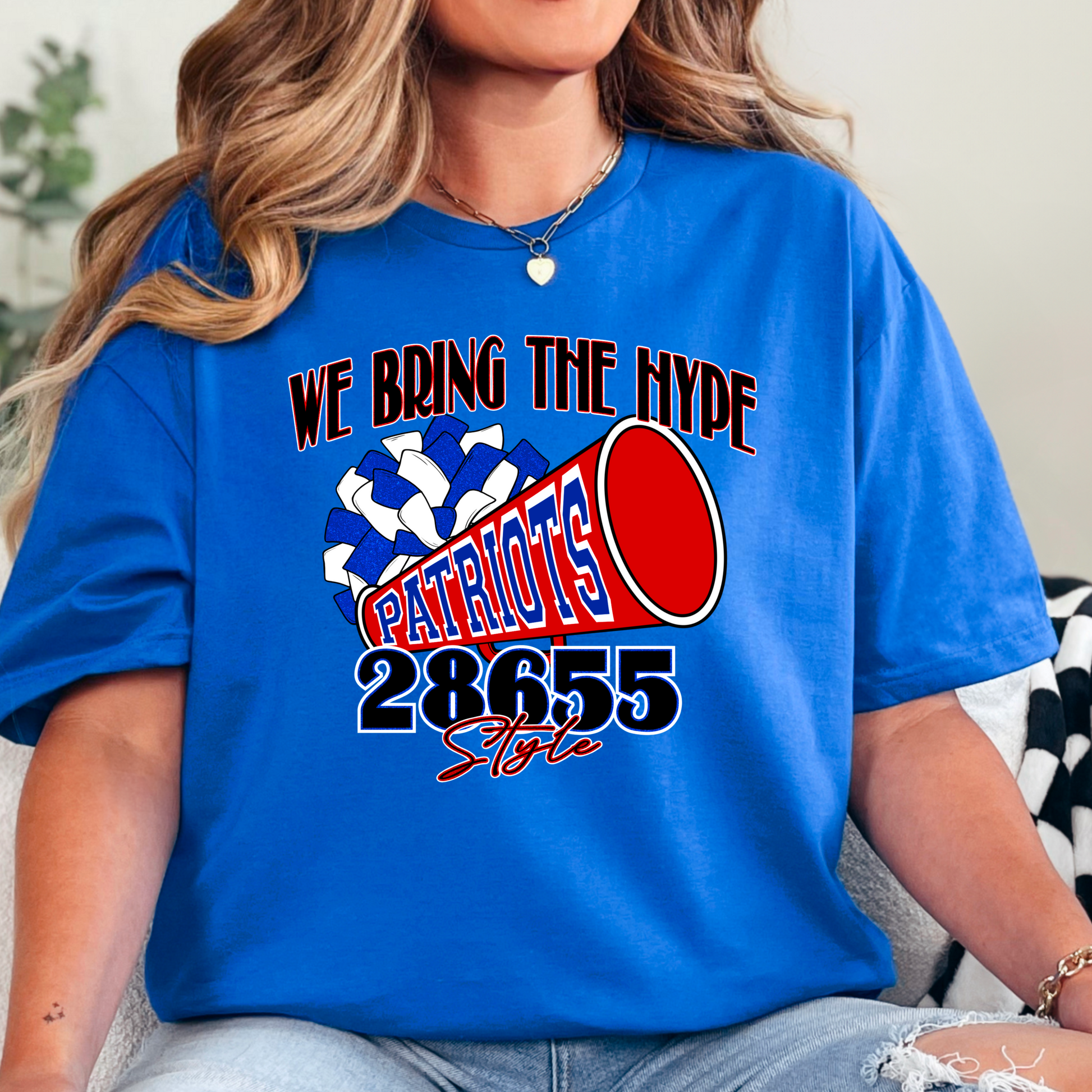 Cheer loud, cheer proud with this eye-catching 28655 tee! Whether you're cheering from the stands or repping your school around town, this shirt brings the energy your Patriots deserve. Let the world know—you bring the hype!