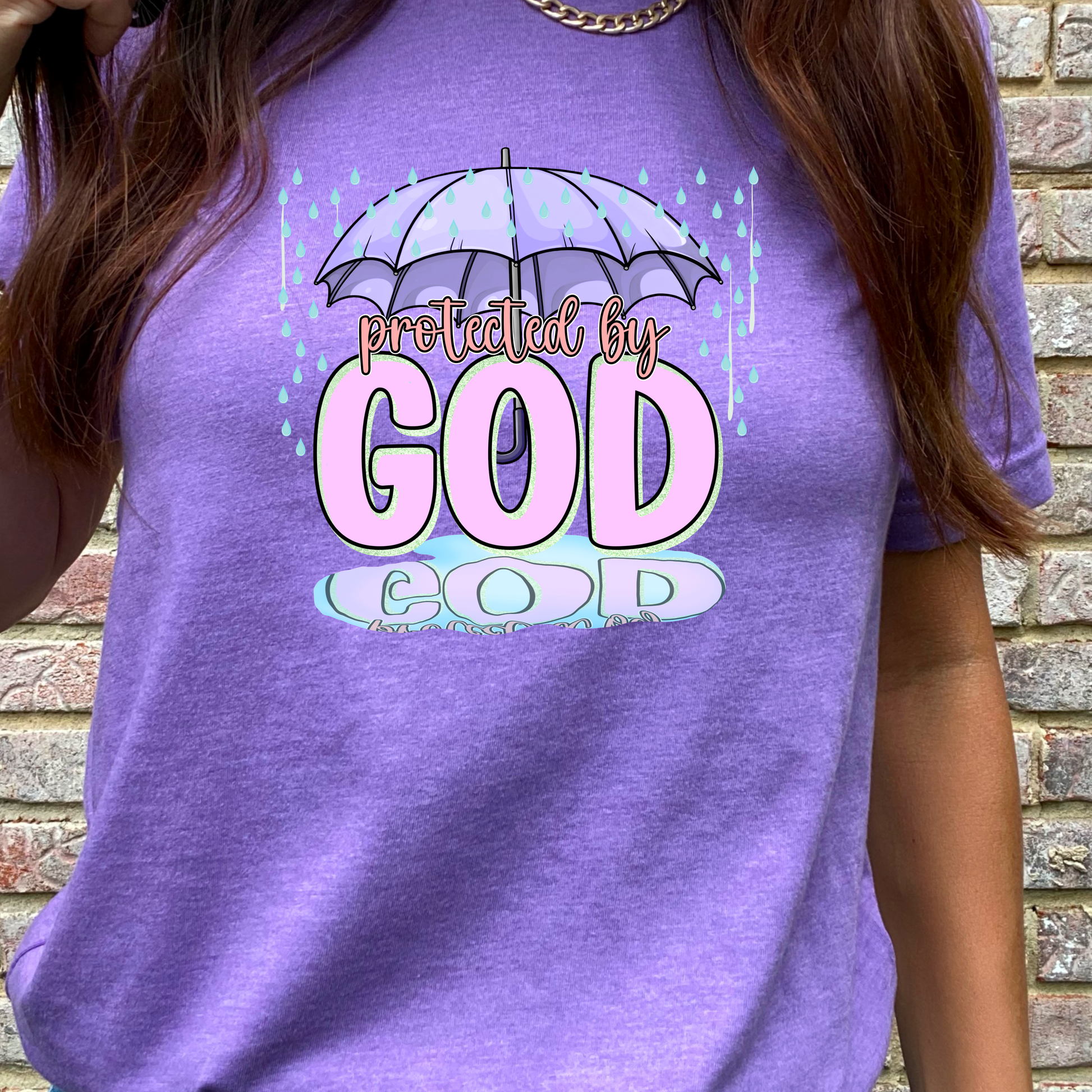 Stay covered in faith with this sweet and stylish “Protected by God” tee. Featuring a pastel umbrella, raindrops, and a reflection-style design, it’s a perfect reminder that you’re always under divine protection—rain or shine.