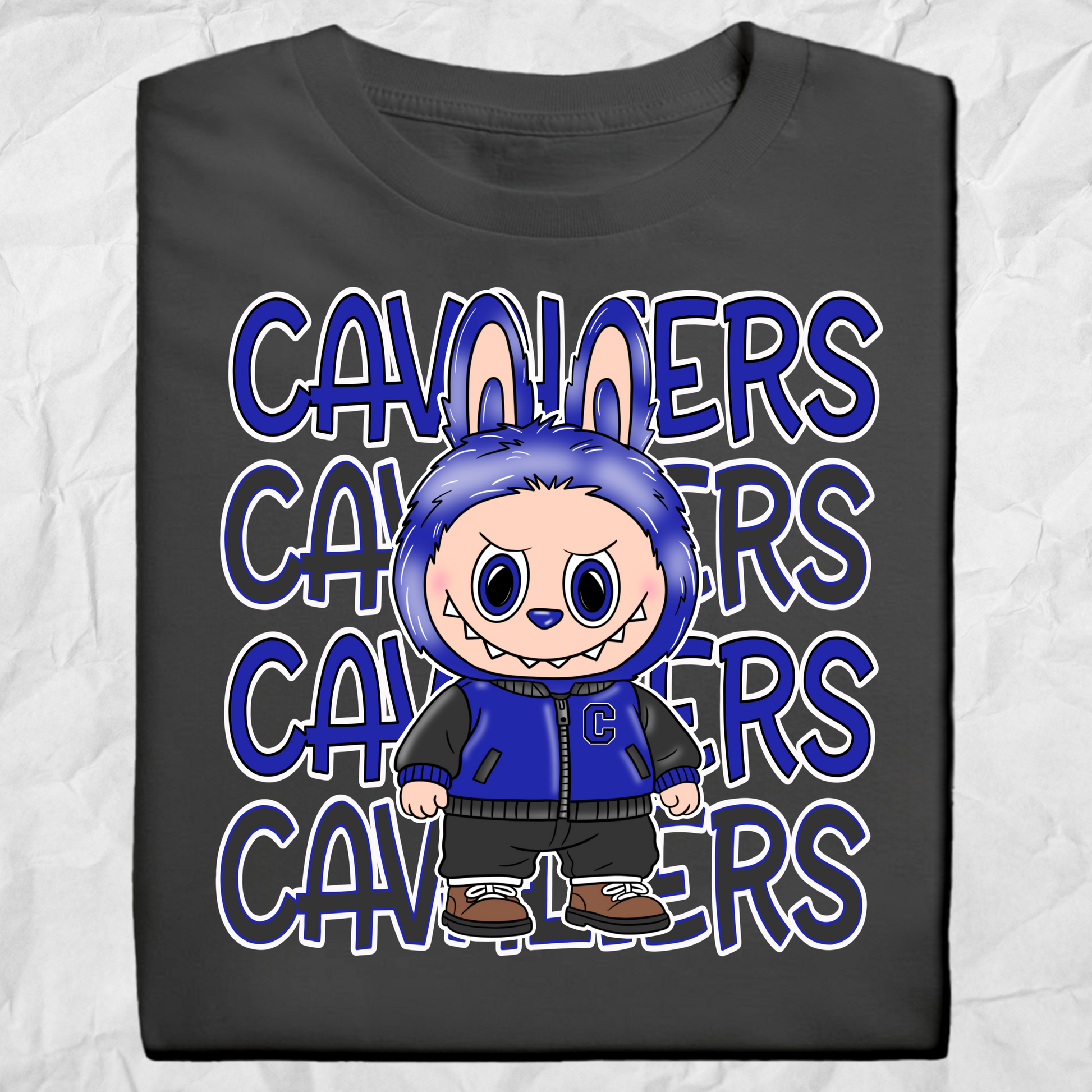 Support your team in style with this Cavaliers tee featuring a blue monster mascot in a varsity jacket! The stacked “CAVALIERS” lettering in bold blue and white adds standout energy to this fun, sporty design. Perfect for students, parents, and fans ready to cheer on the Cavaliers all season long.