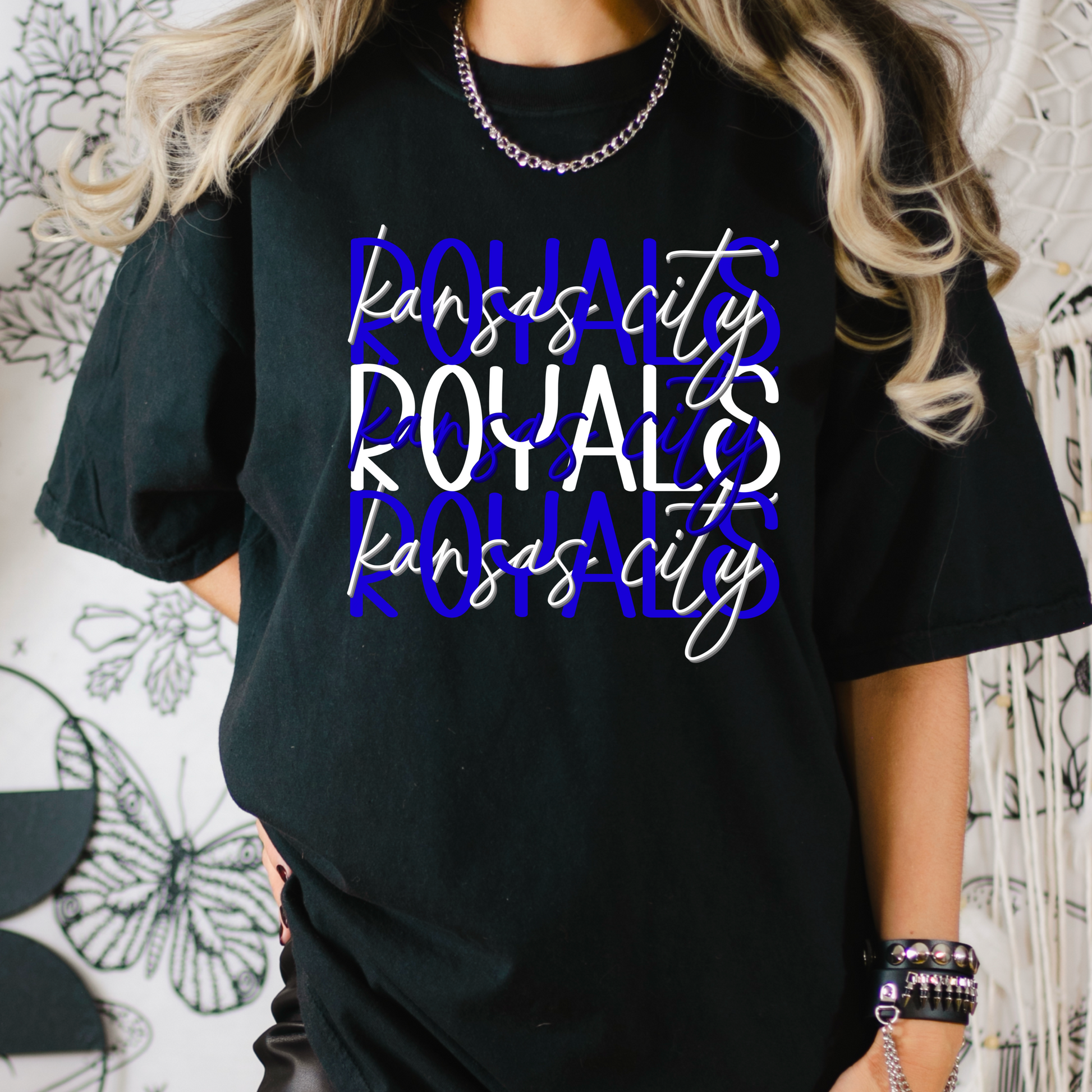 Show your team spirit in style with this Kansas City Royals tee featuring bold stacked lettering and layered script text. A perfect choice for fans who love a modern look with classic team pride.