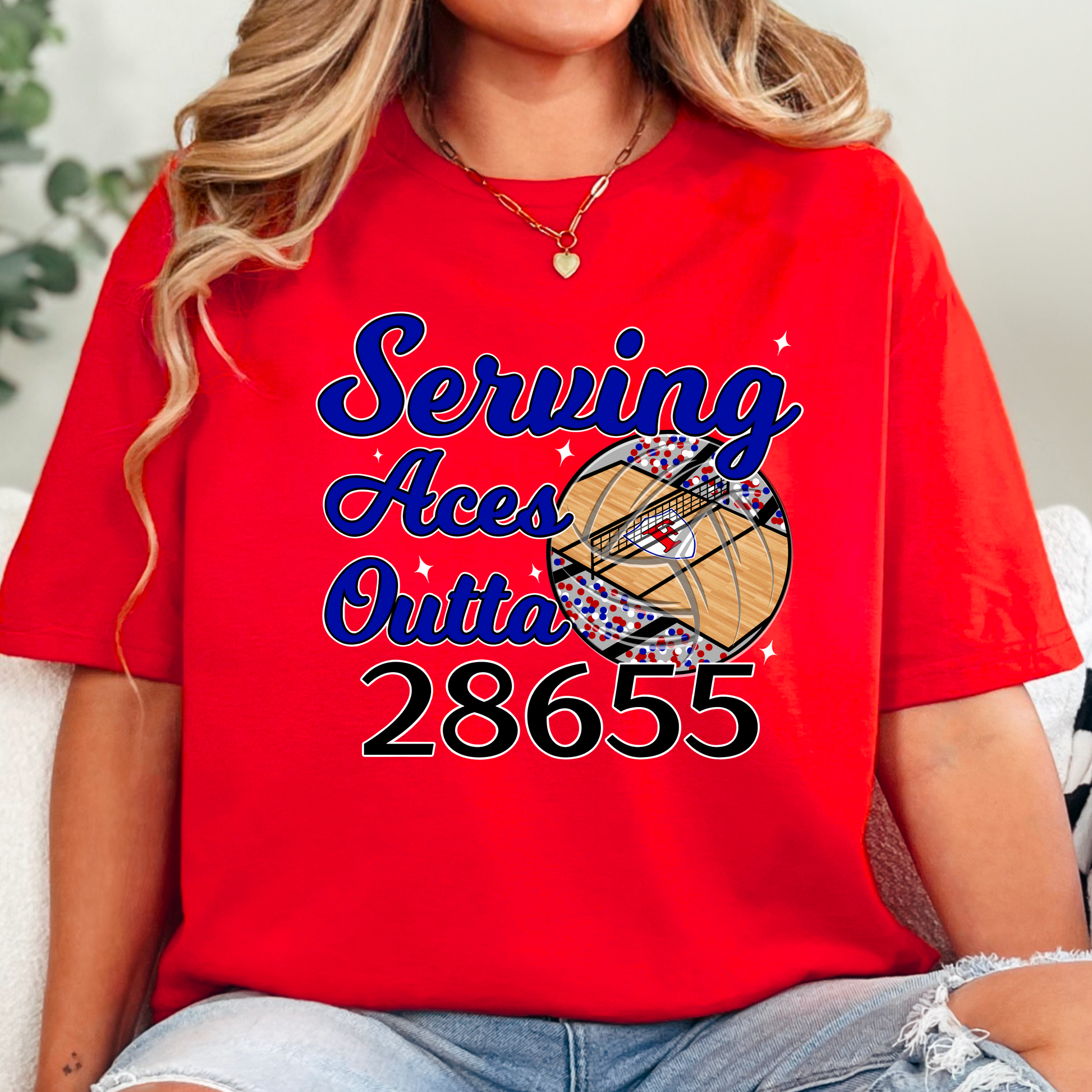 Serving Aces Outta 28655 Patriots Volleyball Tee