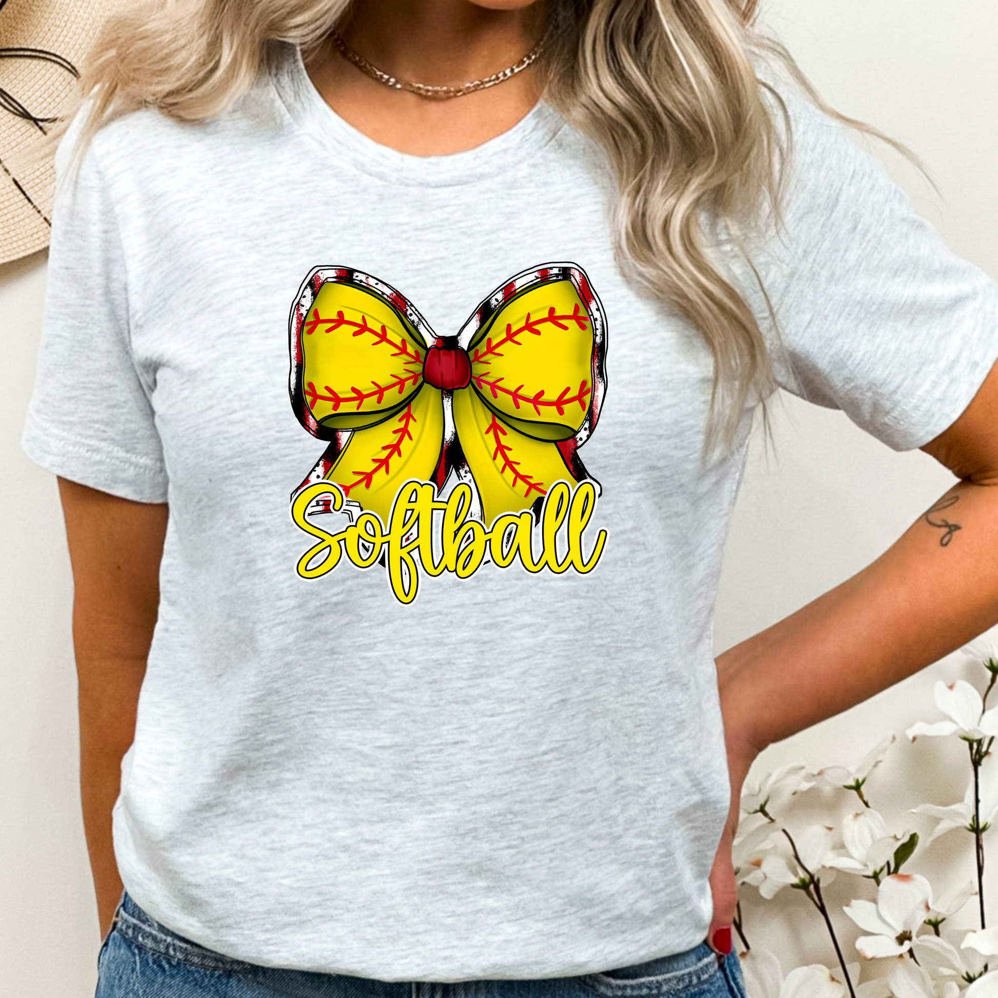 Add a playful twist to your game day outfit with this adorable Softball Bow tee! Featuring a bright yellow softball stitched into a stylish bow, this design is perfect for players, fans, and moms who love to show off their softball spirit with a touch of flair.