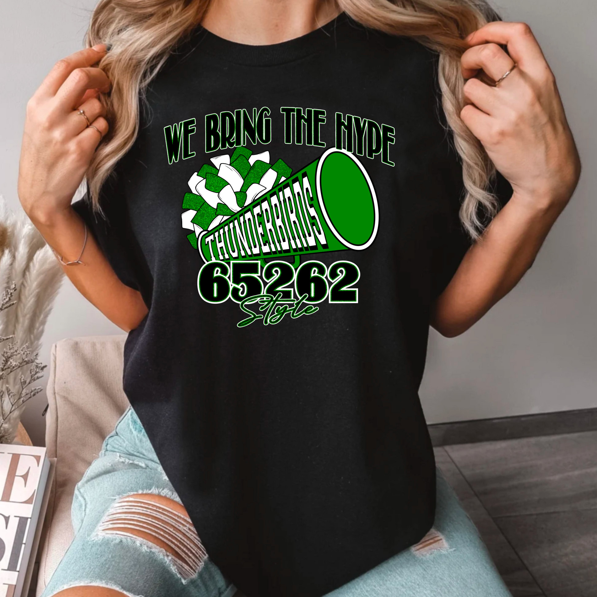 This bold Thunderbirds tee is perfect for those who live and cheer loud in 65262. Whether you're on the sidelines or in the stands, let your hometown pride shine bright in green!