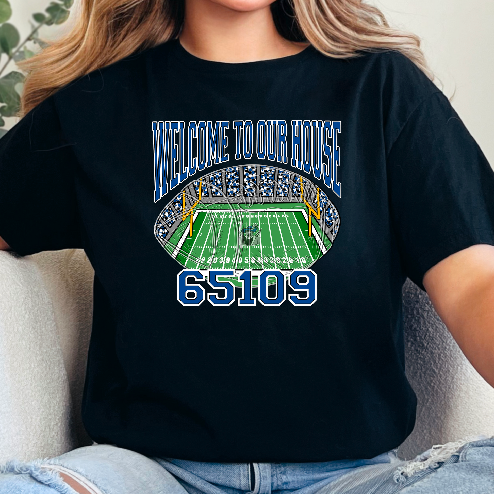 Show your home team pride with this “Welcome to Our House” football tee featuring the 65109 zip code and bold blue Cavaliers design. A perfect game day staple for fans who love cheering under the lights, supporting local sports, and repping their zip with style.